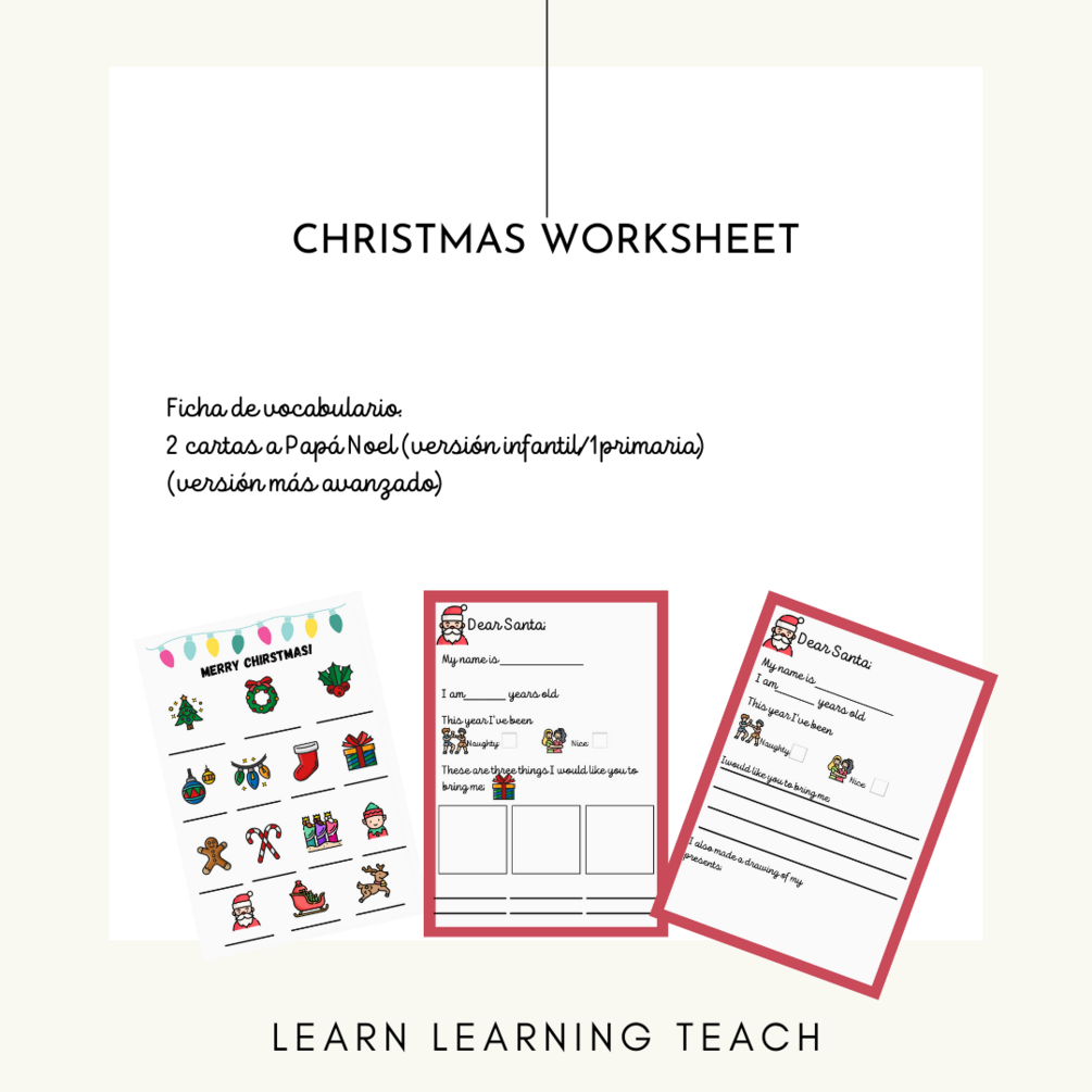 -2 versiones de cartas de Navidad ( 1 versión sencilla para infantil y primeros ciclos de primaria) y otra para alumnos más avanzados y trabajar la expresión escrita.